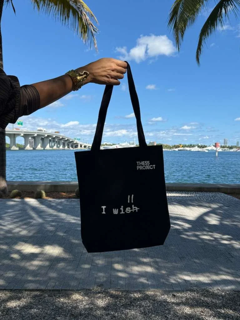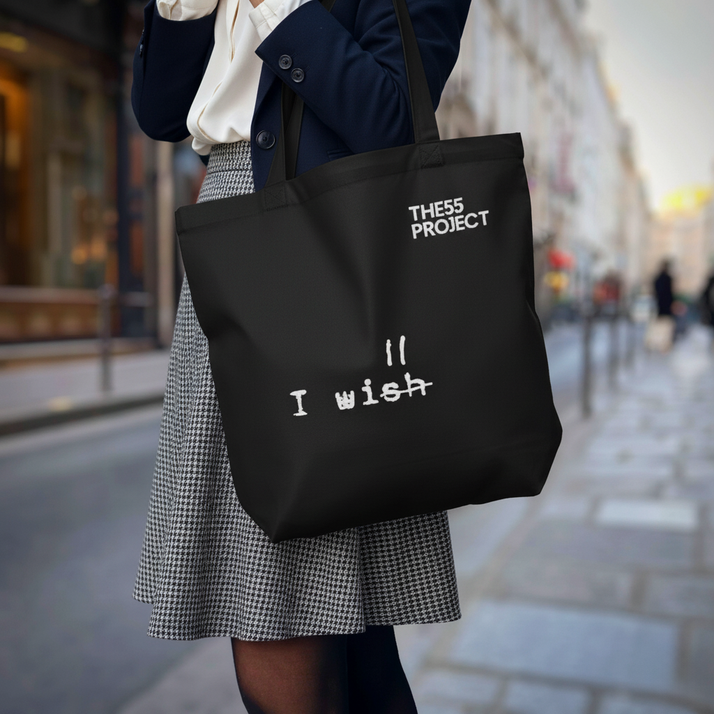 This exclusive tote bag carries the “I will / I wish” artwork, a poetic gesture that transforms longing into language, exploring the tension between what is said and what remains unsaid.